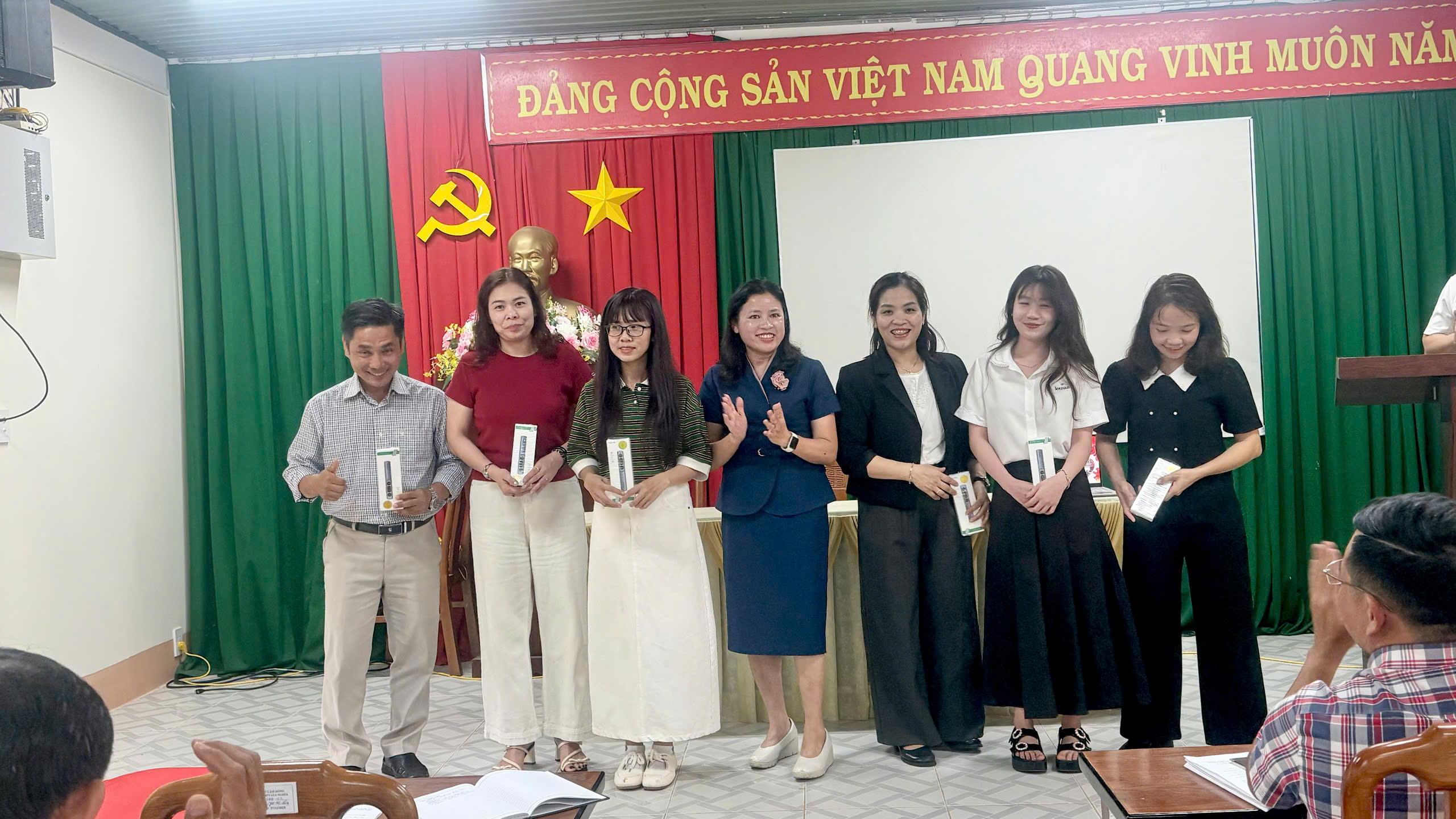 + Bên cạnh những lời chúc tốt đẹp, nhà trường cũng gửi tặng các thầy cô một món quà nhỏ nhưng đầy ý nghĩa – những chiếc bút trình chiếu PowerPoint. Hy vọng món quà này sẽ mang theo sự may mắn, tiếp thêm động lực để các thầy cô tự tin thể hiện bài giảng của mình và đạt kết quả cao trong Hội thi Giáo viên giỏi lần này. Chúc các thầy cô thật nhiều sức khỏe và tỏa sáng!