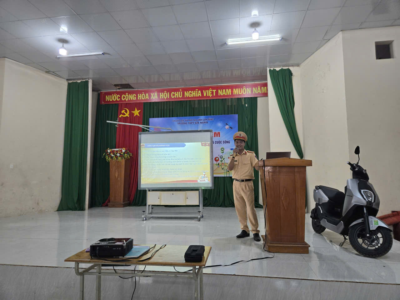 📢 Nhằm trang bị kiến thức, kỹ năng và nâng cao ý thức khi tham gia giao thông, Ngày 17/04/2026 Trường THPT Gia Nghĩa đã phối hợp cùng Phòng Cảnh sát Giao thông – Công an tỉnh Lâm Đồng tổ chức Chương trình phổ biến kiến thức an toàn giao thông, văn hóa giao thông và lái xe an toàn dành cho học sinh khối 12.